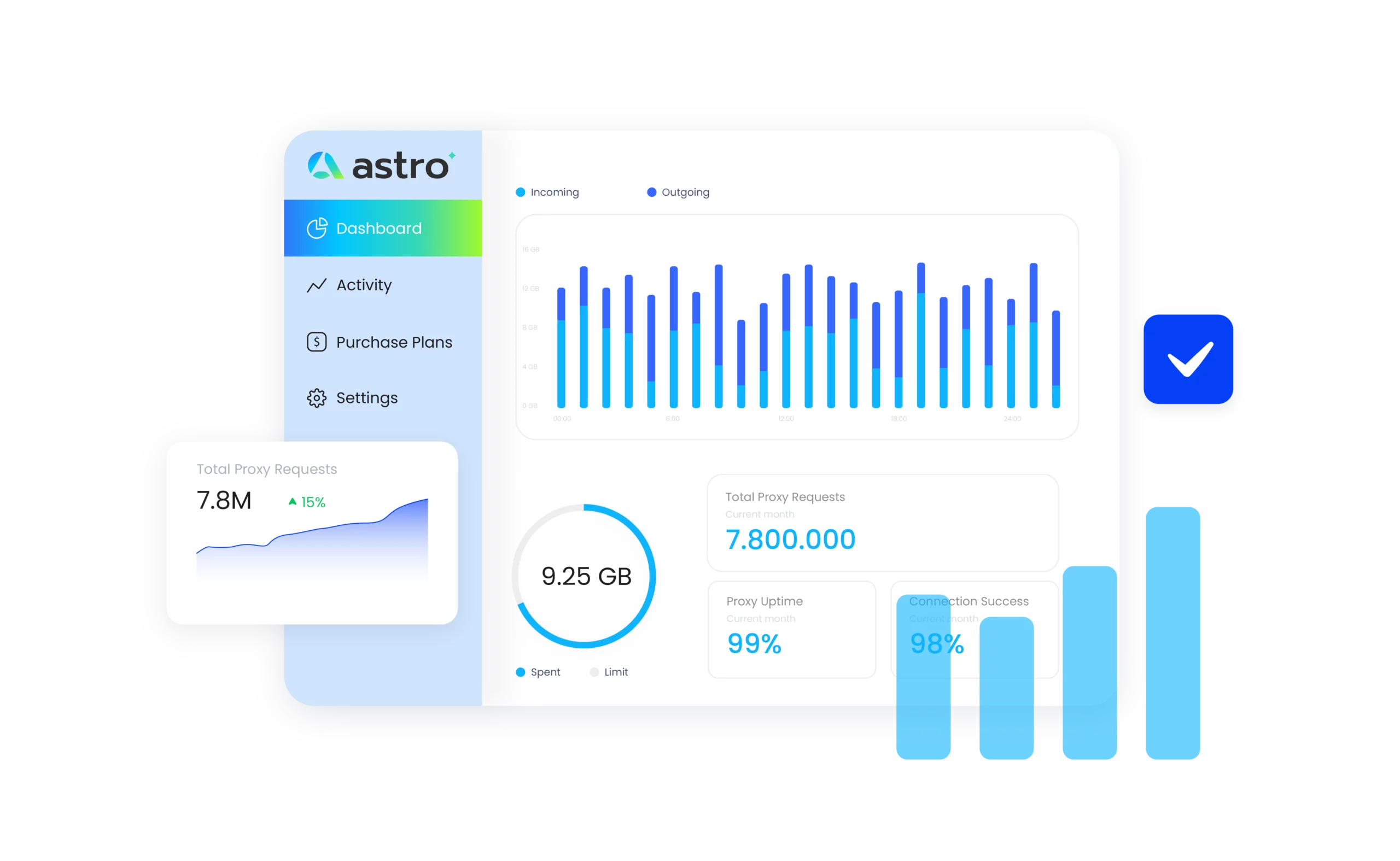 AstroProxy is a powerful and ethical proxy provider, recognized for its value among marketers, developers, and businesses that need anonymity, scalability, and reliability. You can run ad campaigns, manage multiple accounts, or collect data at scale using AstroProxy’s tools and infrastructure to complete tasks securely and efficiently. When paired with Multilogin, it becomes easier to isolate browser profiles and avoid detection across platforms.